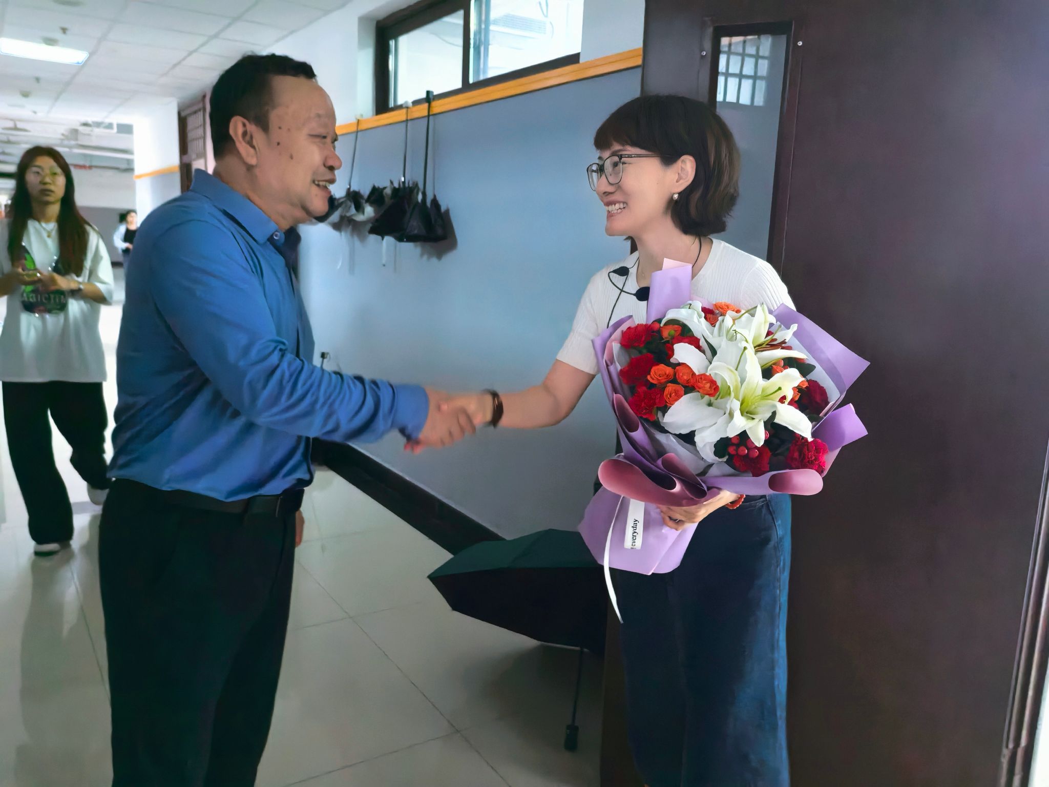 校長黃劍鋒帶隊先后前往經濟與管理學院、食品科學與工程學院看望慰問了數字經濟系主任李瀟、長江學者獎勵計劃青年學者姚曉琳,詳細了解教師教學科研及工作生活情況,對她們取得的成績予以肯定。他指出,教育興則國家興,教育強則國家強。全校教職工要堅持以立德樹人為根本任務,全方位提高教書育人、服務國家戰略的能力,以更加飽滿的工作熱情、更加積極的工作態度、更加務實的工作作風,培養德智體美勞全面發展的社會主義建設者和接班人,為教育強國、教育強省建設,推進學校高質量發展作出更大貢獻。