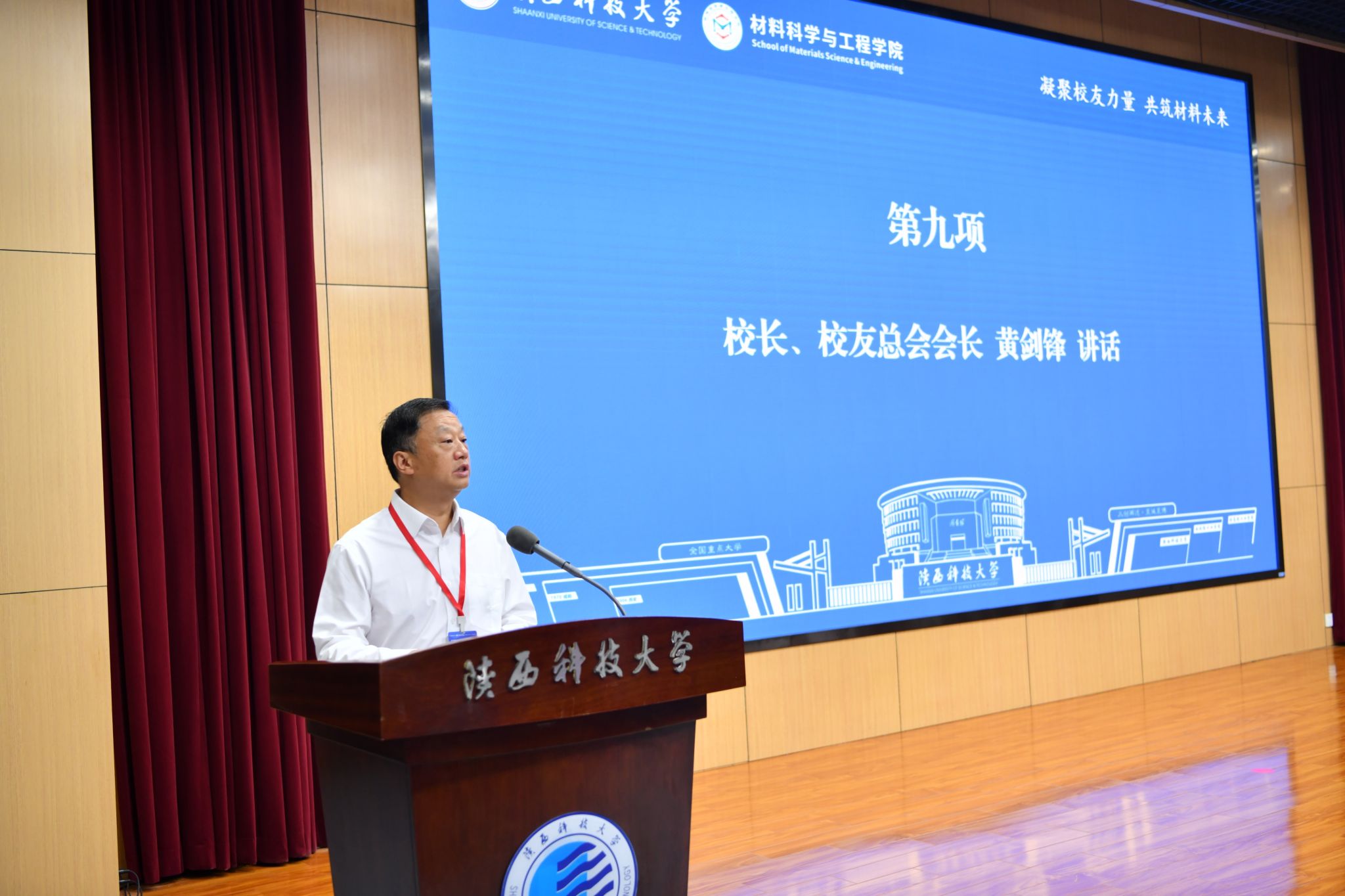 黃劍鋒在講話中向與會校友表示熱烈歡迎,并介紹了學校和材料學院近年來在學科建設、人才培養、科學研究等方面取得的成績。他強調,校友是母校的寶貴資源和財富,更是母校建設發展過程中最可信賴與依靠的重要支持力量。希望廣大校友以校友會成立為契機,傳承“三創兩遷”精神與“至誠至博”校訓,講好母校故事,筑牢校友與母校間情感、事業、價值的聯結紐帶,將個人專業優勢、行業資源與社會影響力轉化為助力學校“雙一流”建設與高質量發展的堅實力量。