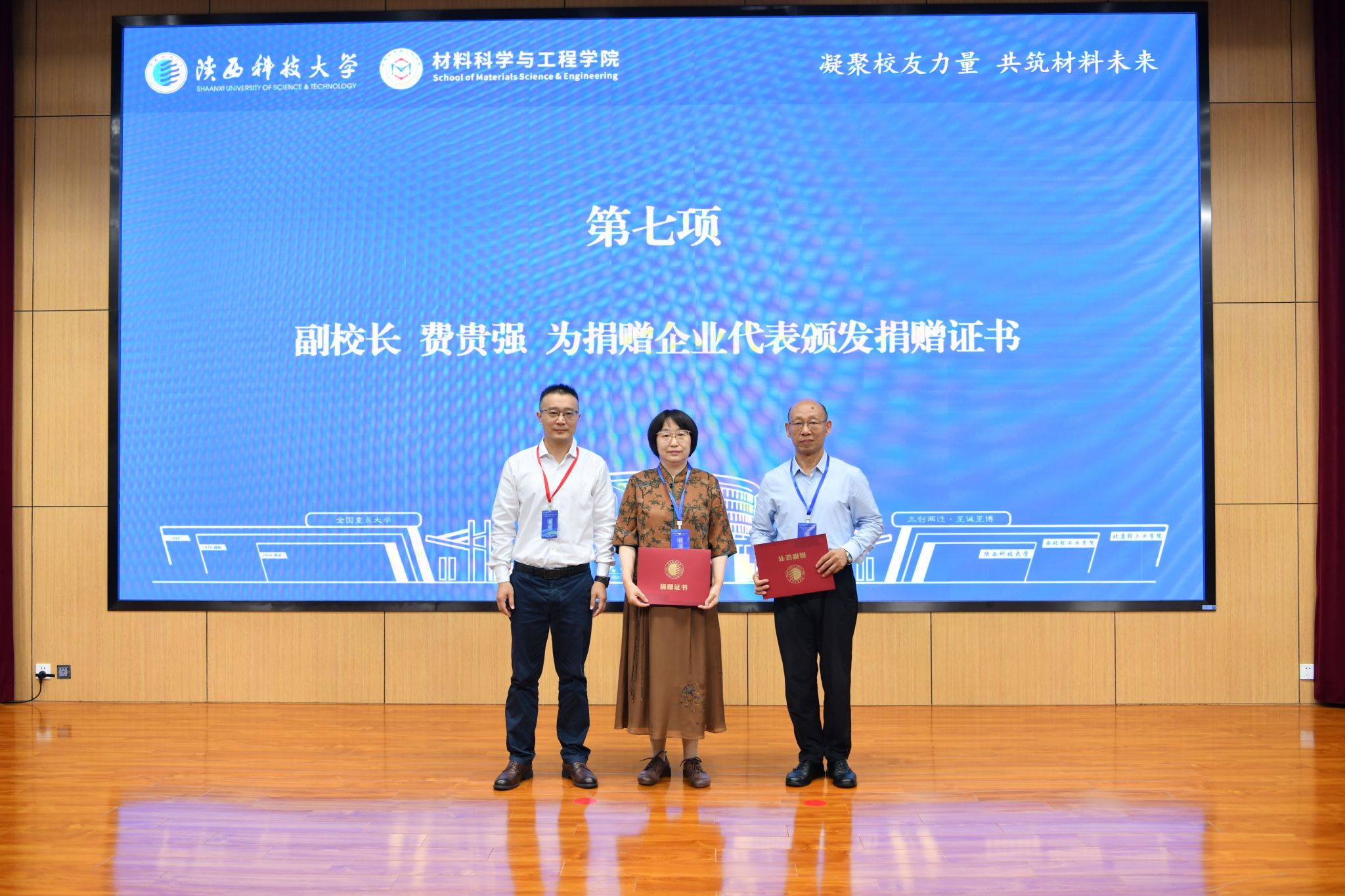 9月13日上午,陜西科技大學材料校友會/理事會成立大會暨第一次校友代表大會在學校圖書館學術報告廳舉行。黨委書記樊建武為首屆會長授會旗并頒發聘書,校長、校友總會會長黃劍鋒出席大會并講話,副校長費貴強為捐贈企業代表頒發捐贈證書。材料科學與工程學院院長楊海波主持大會。