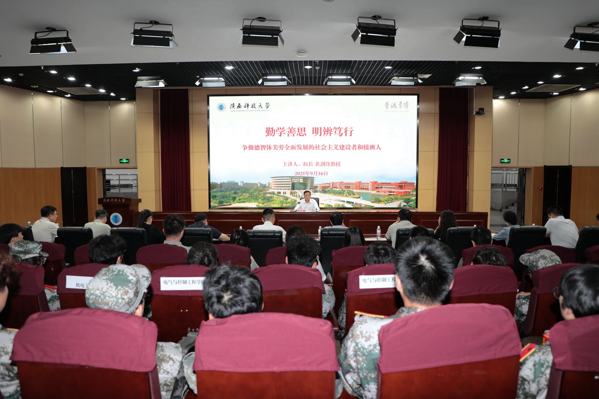 9月16日,陜西科技大學(xué)校長黃劍鋒以“勤學(xué)善思 明辨篤行 爭做德智體美勞全面發(fā)展的社會主義建設(shè)者和接班人”為題,為2025級新生講授“開學(xué)第一課”。