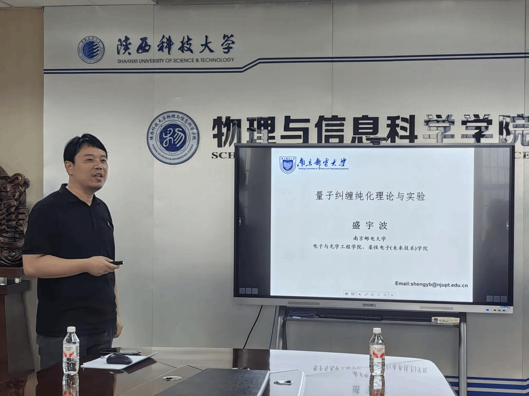7月7日上午,應物理學院、科技處及前沿院邀請,南京郵電大學盛宇波教授做客我校“前沿科學報告”,在理科樓441做題為“量子糾纏純化理論與實驗進展”的學術報告。報告會由物理學院院長劉建科主持,相關專業(yè)教師、研究生參加報告會。